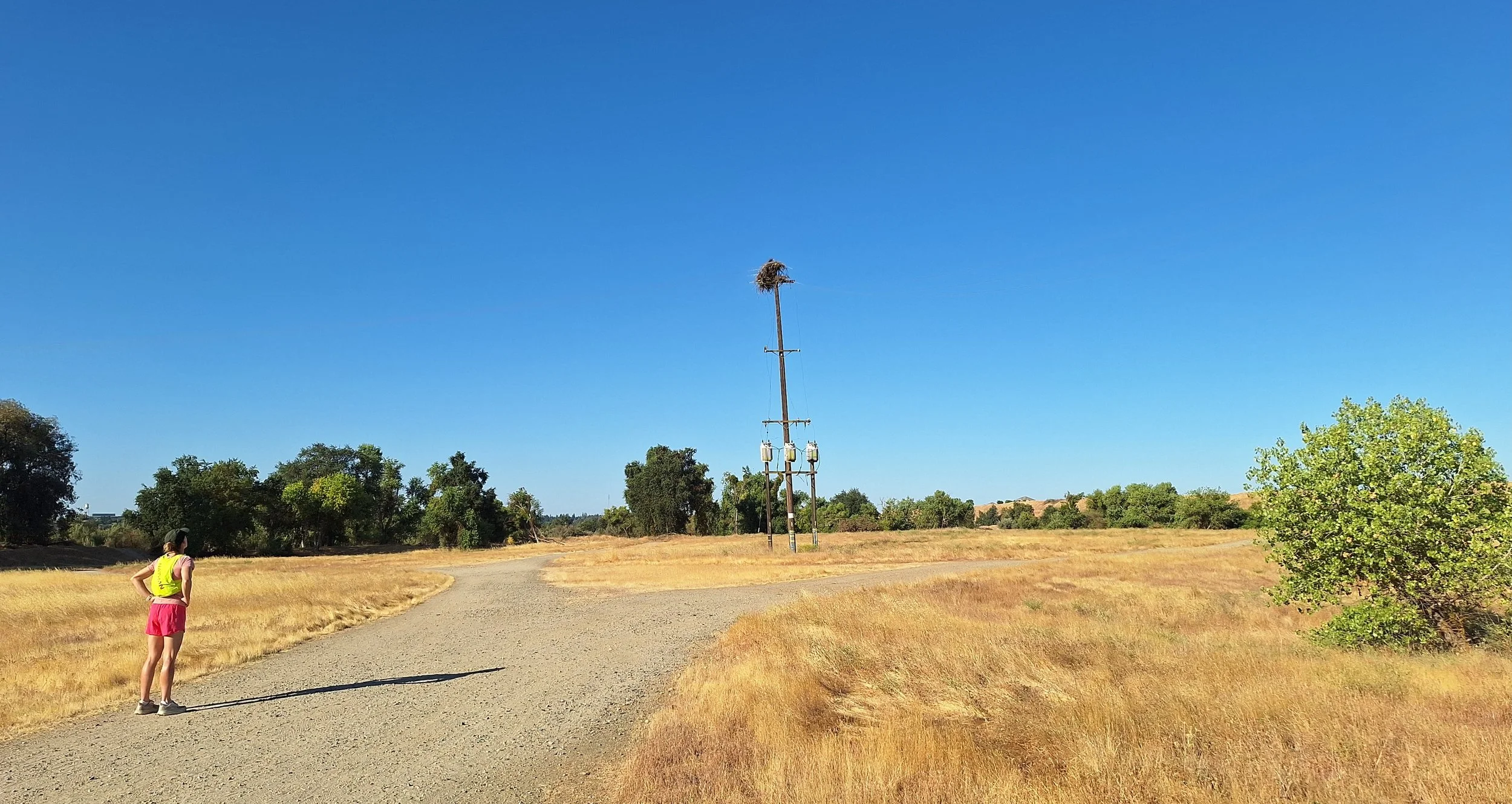 Success was finally on the horizon, literally: a 60 feet tall power pole sat squarely in the middle of an expansive open space. Atop this skyscraper sat a ramshackle multi-story nest. No fire had ever occurred there. I could set up my gear anywhere I wanted.
